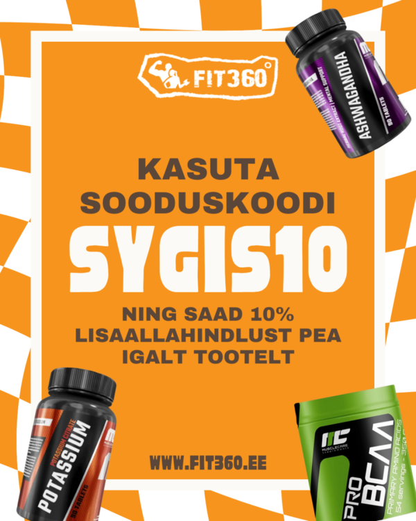 NB! Sooduskood ei kehti NOCCO (kastiga), Barebells (karbiga), Universal ja Optimum Nutrition toodetele – kõigele muule kehtib 😊