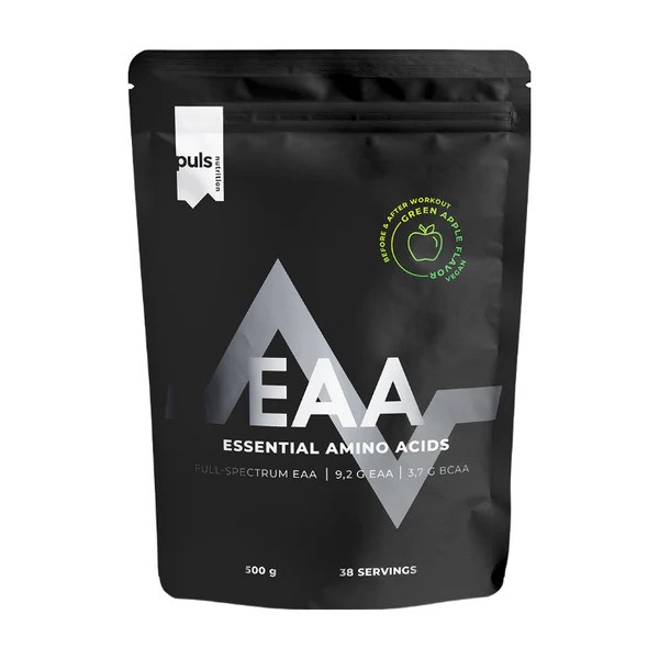 Kui treenid regulaarselt ja tahad oma tulemustest maksimumi võtta, on oluline, et kehal oleks piisavalt ehitusmaterjali lihaste taastumiseks ja kasvuks. Puls EAA pulber sisaldab kõiki hädavajalikke aminohappeid (EAA – Essential Amino Acids), mida organism ise ei suuda toota ning mis tuleb saada toidust või toidulisanditest.